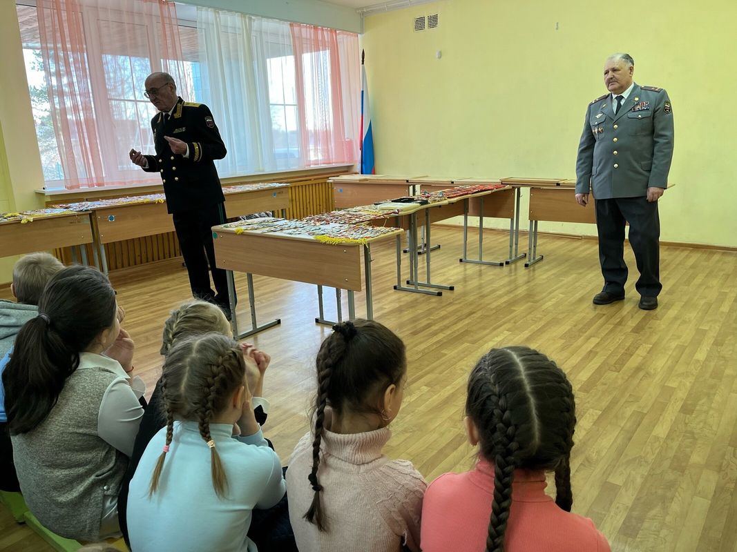 20 марта нашу школу посетили члены Карельского регионального отделения общероссийского общественного движения «В поддержку армии, оборонной промышленности и военной науки» генерал Деготь Евгений Анатольевич и полковник Гущин Андрей Иванович с выставкой знаков и наград из собственной коллекции.