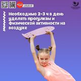 •Физическая активность для детей крайне важна. Прогулки на свежем воздухе вдали от шумных и загазованных улиц – ежедневная потребность здорового ребёнка. А спортивные тренировки помогут в формировании мышечного корсета и хорошей осанки, укрепят кости и суставы, сердечно-сосудистую и дыхательную системы.