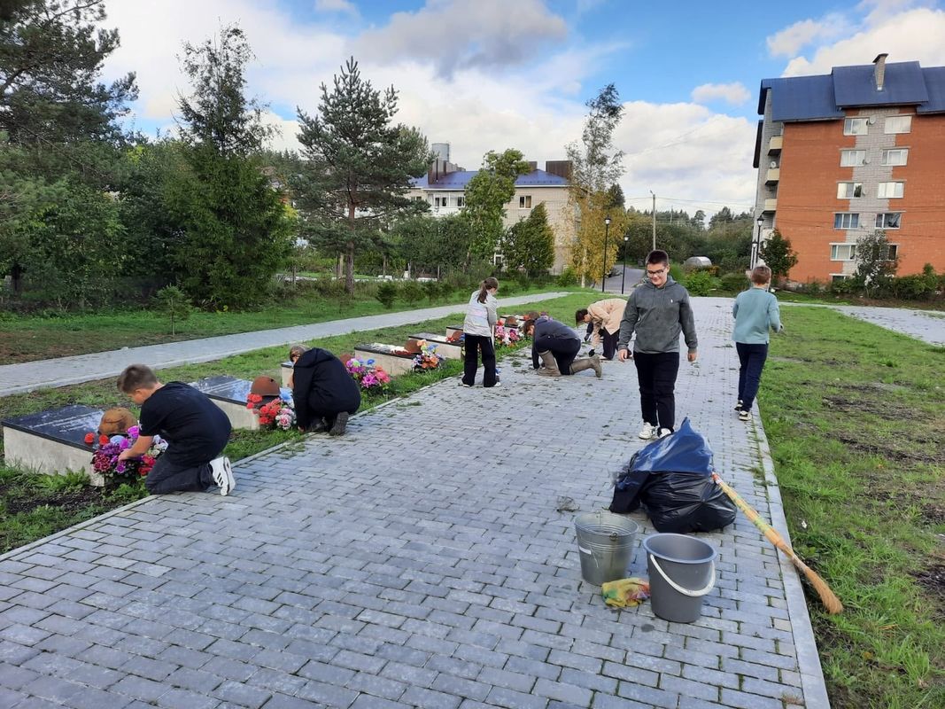 В преддверии важной исторической даты – освобождения города Сортавала от фашистских оккупантов, шестиклассники 22 сентября провели субботник на Братском захоронении поселка Заозёрный. Намыли памятник и гранитные плиты, перебрали цветы, собрали мусор, почистили дорожки. К ребятам присоединилась Коваленок Анна Николаевна, директор КСУ «Созвездие» ХСП.