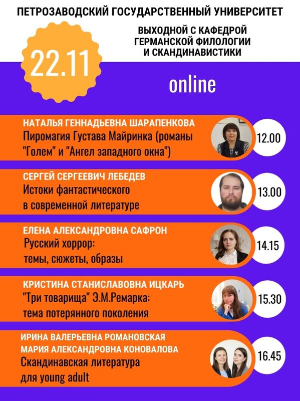 22 ноября Институт филологии Петрозаводского государственного университета приглашает всех желающих присоединиться к программе «Выходной с кафедрой германской филологии и скандинавистики».