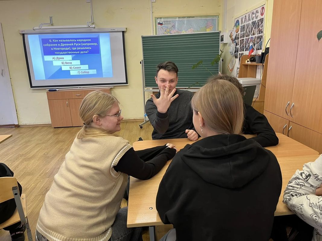 В рамках комплекса мероприятий, приуроченных ко Дню молодого избирателя, секретарь УИК № 144 Анастасия Данилова провела для девятиклассников Туокслахтинской школы викторину-квиз "Голос из будущего: я - избиратель!".